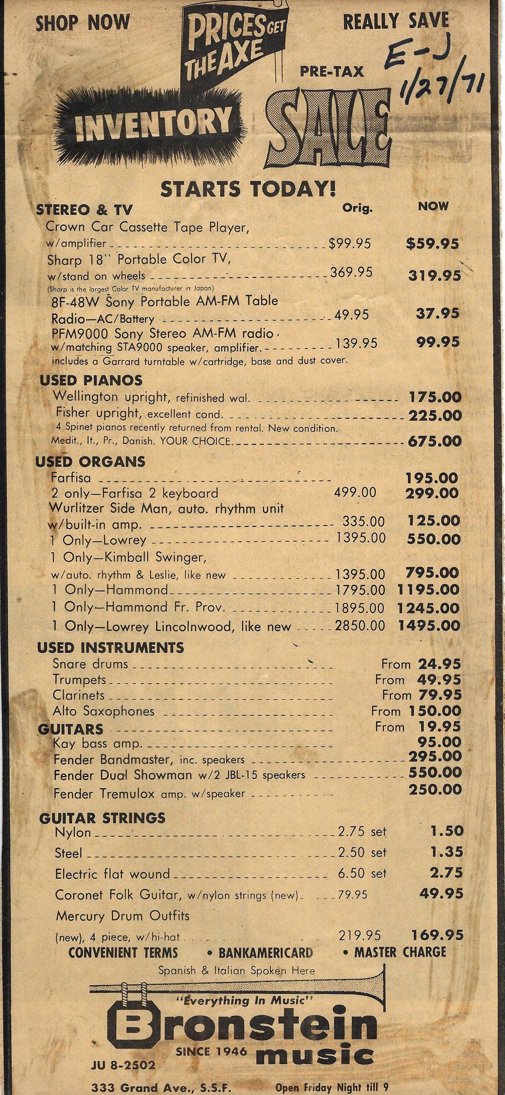 The 1989 Bronstein Music "Tuxedo Sale"