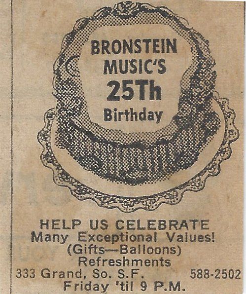 On February 9th, 1946, Milton and Celia Bronstein opened the doors to the public for the first time. Their first customer was a small boy named Buddy Powers. Buddy walked into the store with a can of change, dumped it on the counter, and proclaimed his intention to buy a trumpet. Mr. Bronstein not only found Buddy a trumpet, but he also gave him his first lesson. Little Buddy Powers grew up to become a renowned commercial musician, working extensively with Woody Herman.